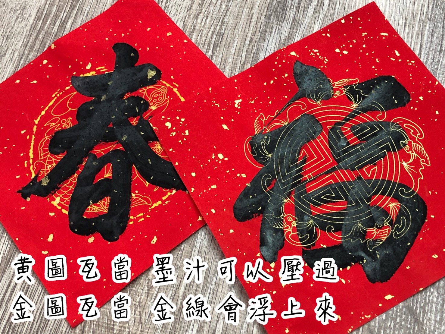 《七言 半手工瓦當灑金紅宣 黃圖花鳥》一包100張 春聯紙 過年 紅紙 萬年紅 對聯 門聯 春聯 17x112cm