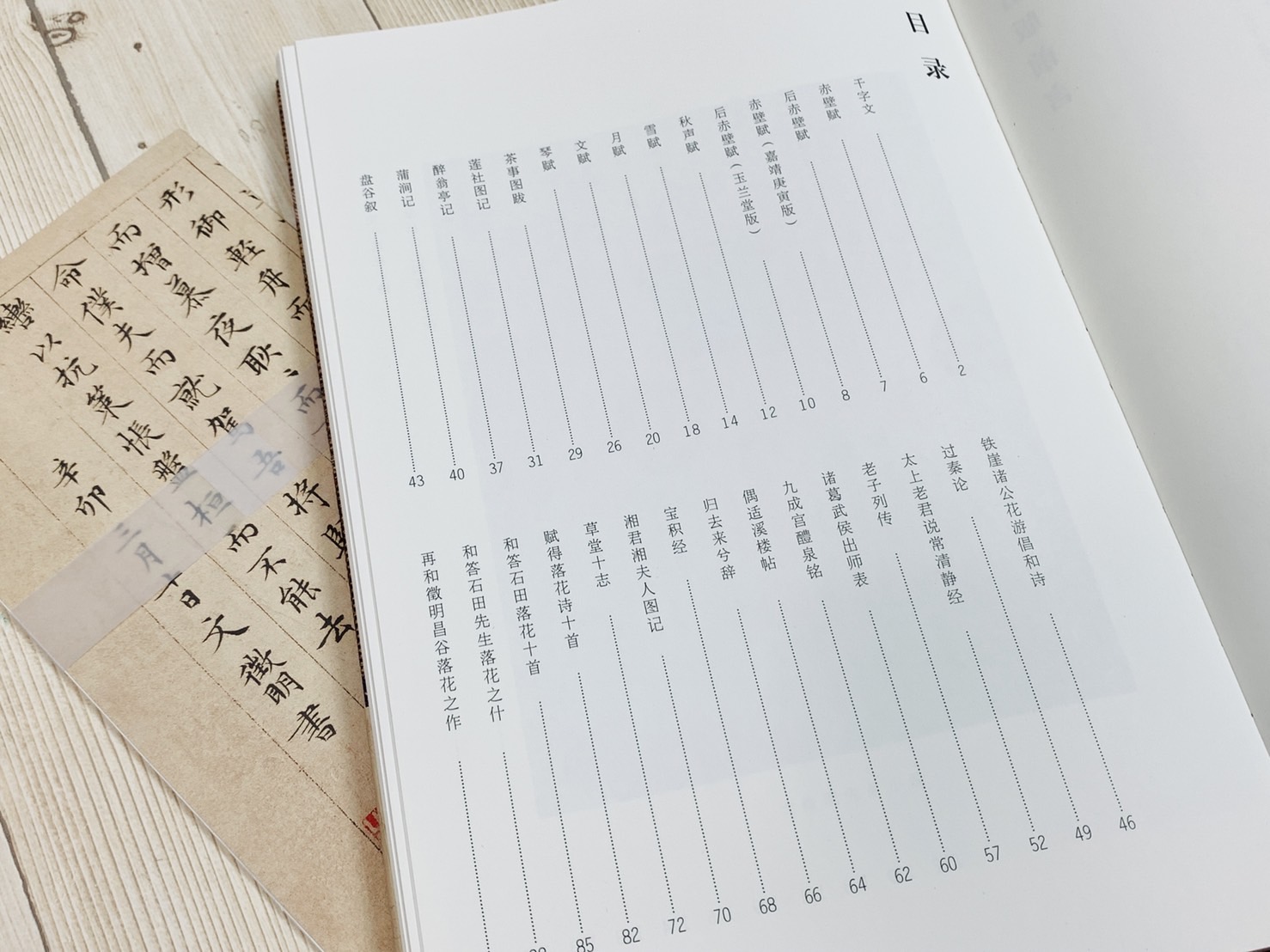 它囊括了《千字文》《琴賦》《文賦》《草堂十志》《蓮社圖記》《心經》《金剛經》《離騷經》等有名小楷墨跡,