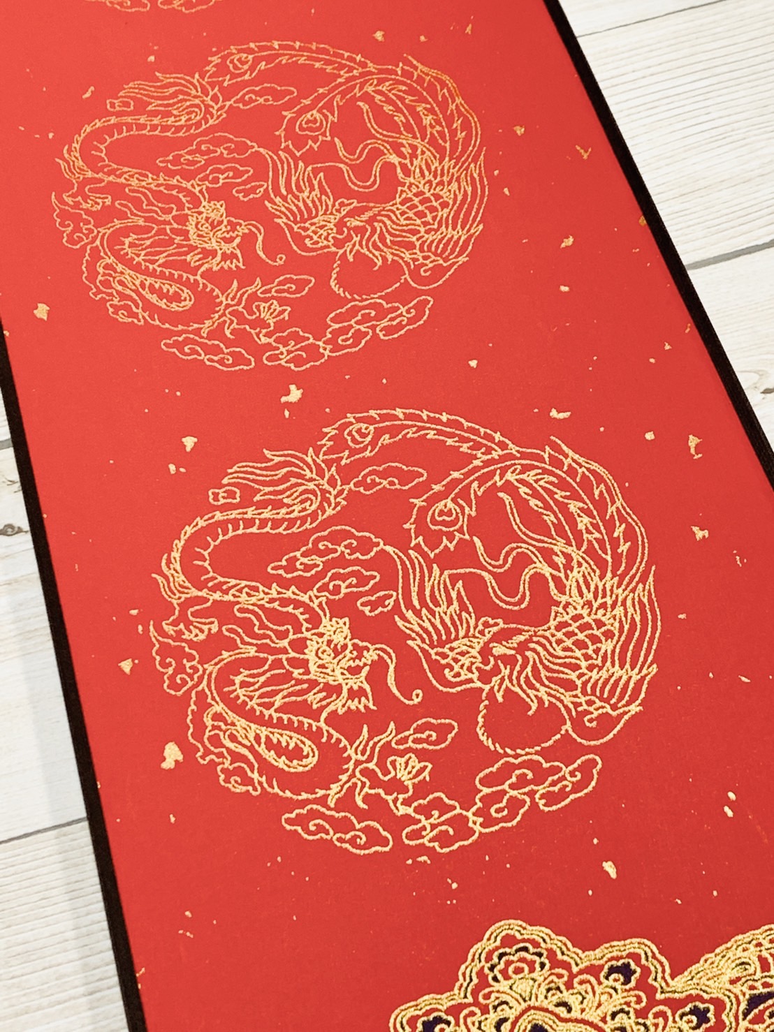 《蠟染彩繪瓦當七言對聯小捲軸》