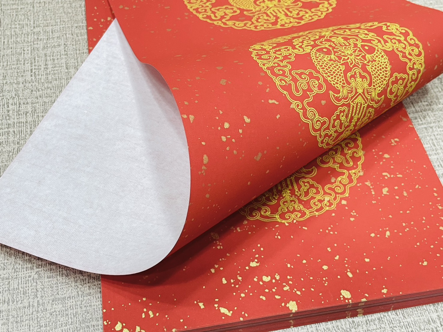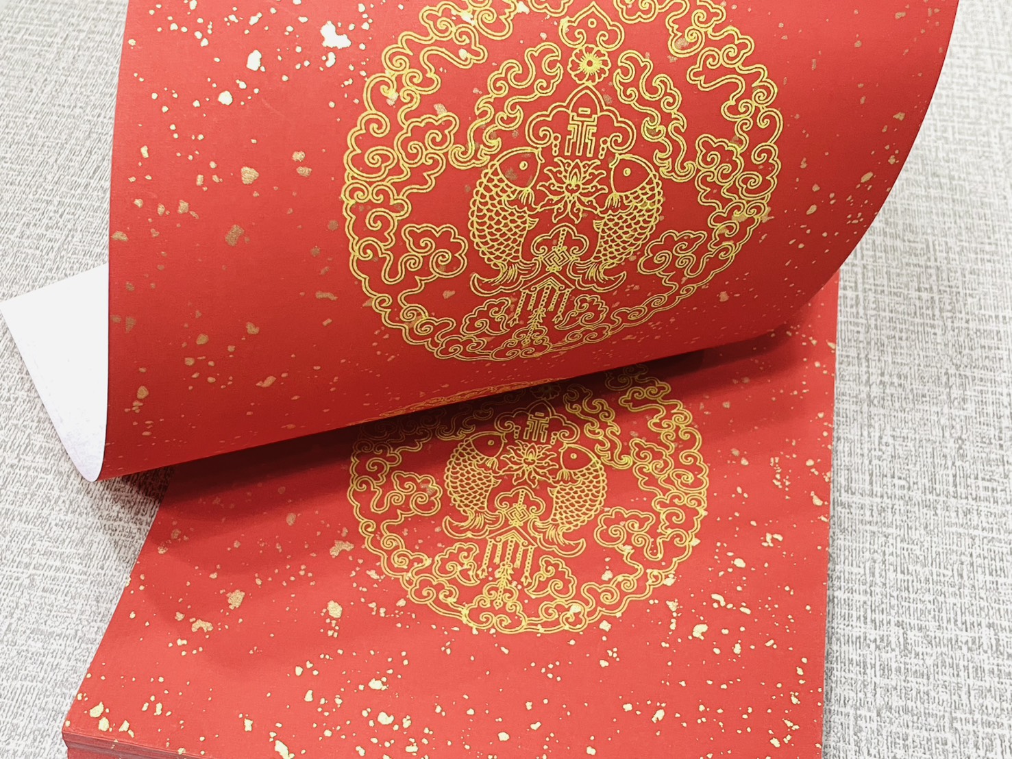 品名:窄四言 瓦當灑金宣 (黃圖雙魚)